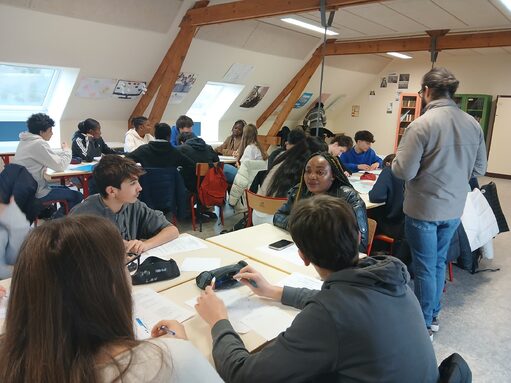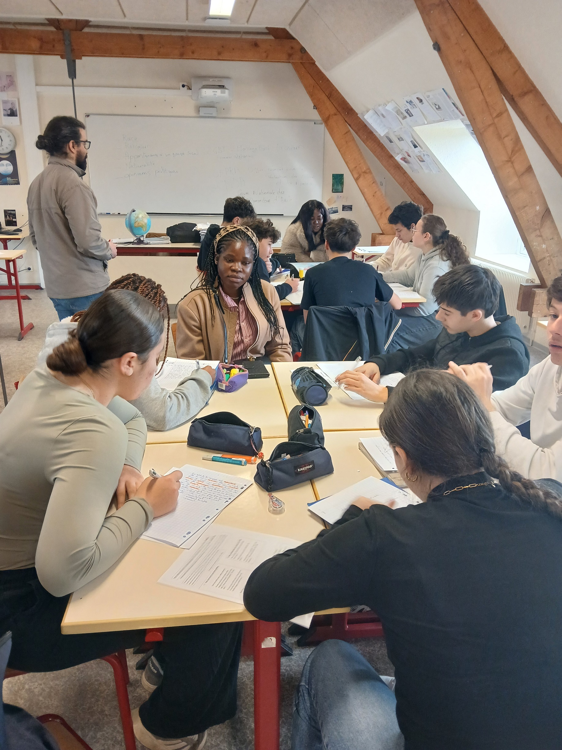 Pendant une heure, les élèves -répartis en groupe- « interviewent » un demandeur d’asile volontaire. Ce temps est parfois celui d’un véritable partage, ou d’une prise de conscience. Guerre, excision, traite des êtres humains, violences politiques ne sont plus de vains mots ; la Méditerranée redevient dangereuse, le passage des frontières redevient un défi, certains entendent la peur et l’espoir. Ils s’aperçoivent aussi qu’ils sont nés dans un pays libre, laïc et démocratique, valeurs qu’il est aujourd‘hui particulièrement important de comprendre.Chaque groupe doit ensuite rendre compte, à l’oral, du parcours du demandeur d’asile rencontré, et exprimer ce qu’il a appris et ressenti.